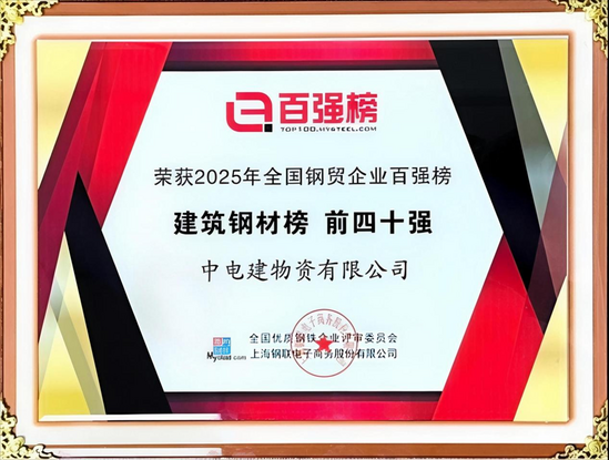 電建租賃公司所屬物資公司榮登“2025年全國鋼貿(mào)企業(yè)百強榜—建筑鋼材榜 前四十強” | |||